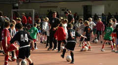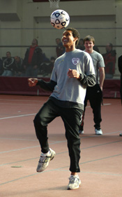 SWARTHMORE, Pa. -- The Swarthmore College men's soccer team hosted a youth soccer clinic on Sunday, February 4th, raising over $2,100 for the relief agency Genocide Intervention Network. The clinic, which attracted 136 youth soccer players from around the area, was organized and run by Garnet head coach Eric Wagner, assistant coaches Ciarán Dalton and Alex Elkins '05, and the Garnet varsity soccer players. The children learned basic skills, such as passing, dribbling, and shooting, and also had a chance to play matches against each other during the two-hour clinic. The children and their parents also learned about the terrible situation in Darfur, the Sudan, from four of the G.I.Net's student-spokespeople at the College.