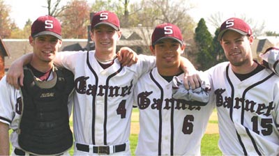 Prior to the first pitch, four Swarthmore student-athletes were honored during the annual Senior Day. The senior captains (pictured left to right) Ben Mendelson (Sabbatus, Maine / Lewiston), Scott Dalane (Vernon, N.J. / Vernon Township), Justin Chen (Media, Pa. / Penncrest) and Travis Allen (Suffield, Conn. / Loomis Chaffee) were given jerseys in appreciation for their four years of dedication and commitment to the Garnet Baseball Team.