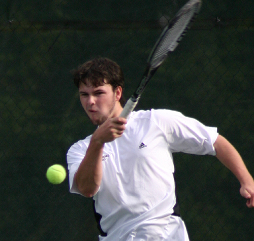 Shaughnessy (South Kingston, R.I. / South Kingston), a first-team All-Centennial doubles selection at the end of last season, did not miss a beat with his new partner, Legunn. The duo sailed past Haverford’s Evan Stiegel and Thomas Kinrade (ranked 24th in the June ITA polls) in the first round of Flight 1 action, by score of 8-3. Shaughnessy (left) got a bit of revenge; it was Stiegel and Kinrade who handed the Swarthmore senior his lone Centennial doubles’ defeat of 2008 (Shaughnessy and partner Jon Lo ’08 were a perfect 8-0 during the regular season). The victory enabled Shaughnessy and Legunn (Waccabu, N.Y. / John Jay) to advance into the finals where the top Delaware duo, Andre Vorobyov and Austin Longacre, prevailed by a score of 8-2.