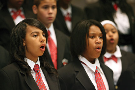 A lot of the music that I write for the chorus embraces the kids’ musical traditions. I didn’t understand that when I first started working with them. I had this fantasy that we would be singing Bach cantatas—that I’d be bringing the gospel of Johann Sebastian Bach to the kids. What was I thinking? I didn’t know any better. I didn’t know anything about Chester; I didn’t know anything about what these kids needed. But when I began to pay attention to what they were telling me, the signals they were giving me, I began writing music that embraced ideas of social justice and change and compassion and sharing.