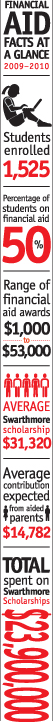 This academic year, the College will spend $23.9 million on scholarships. And this figure does not reflect the so-called “hidden scholarship” given to every Swarthmore student. (See “What’s the Cost of a Year at Swarthmore?” chart at left)