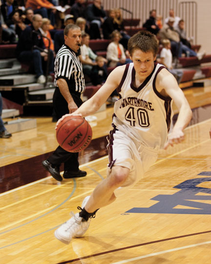The men’s basketball team made strides in 2009–2010, more than doubling the previous season’s win total while playing spoiler to the rest of the Centennial Conference, upsetting playoff-bound teams Ursinus and Gettysburg in Tarble Pavilion. With freshmen leading the team in nearly every statistical category throughout the season, the future looks bright for the Garnet. Will Gates ’13 completed one of the best first-year campaigns in program history, finishing third in the conference in scoring and fifth in rebounding, and earning All-Centennial honors. Gates’s 16.1 points-per-game ranks as the second-best scoring average for a freshman in Centennial Conference history. Captain Matt Allen ’10 finished his career ranked sixth in career three-pointers (138) and eighth in career assists (217).