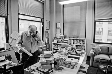 At his Nation office, Navasky attends weekly editorial meetings and writes occasional pieces. “The joke is I’m the obituary writer because I’ve written obituaries for Paul Newman and Studs Terkel—all these people I had inveigled into the magazine who are dying off.”