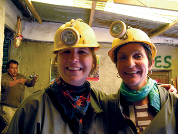 Allison Marsh (left) with colleague Gabi Kuenzli, preparing to tour the silver mines of Cerra Rico in Potosi, Bolivia.