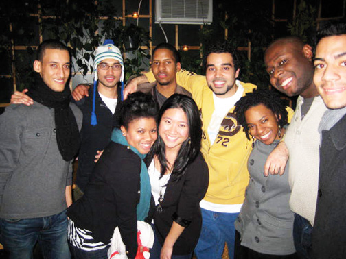 New York Variety Show: Back row: Luis Rodriguez ’09, Humzah Soofi ’10, John Boucard ’10, Omar Ramadan ’08, Kinei Braithwaite ’08, Twan Claiborne ’08, and Philippe Celestin ’10. Front row: Taleah Kennedy ’10 and NYC Connection co-chair Lily Ng ’08.
