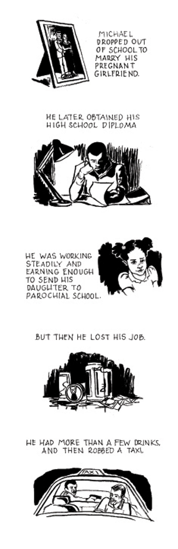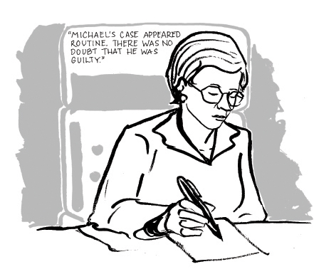 “I also imposed a sentence of two years probation following his imprisonment conditioned upon repayment of the $50. My rationale for the lesser penalty, outlined in my lengthy opinion, was that this was a first offense, no one was harmed, Michael acted under the pressures of unemployment and need, and he seemed truly contrite. He had never committed a violent act and posed no danger to the public. A sentence of close to a year seemed adequate to convince Michael of the seriousness of his crime.”