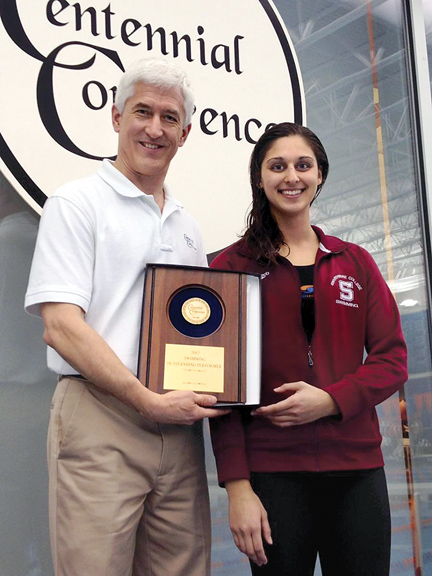With six gold medals, swimmer Supriya Davis ‘15 was named most outstanding female performer of the Centennial Conference;
