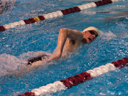 John Flaherty ’14 earned a gold medal in the 400 IM and a silver in the 200 butterfly to lead the Garnet to a fifth-place finish at the CC championships. Flaherty shaved nearly a full second off the decade-old school record in the 400 IM (4:10.11) to become the first Garnet male to win gold at the championships since 2009. The Garnet’s other medalist at the CC finals was junior Josh Satre, who took home a bronze medal in the 1,650 freestyle (16:48.80). Other strong performers at the meet were Charlie Hepper ’13 (6th/400 IM/4:18.15), Tim Brevart ’12 (7th/100 freestyle/47.30) and the Garnet’s 400 free relay team of Brevart, Daniel Duncan ’13, Flaherty ’14, and Neil Palmer ’12, which finished fifth and posted the fourth fastest time in school history (3:13.18).