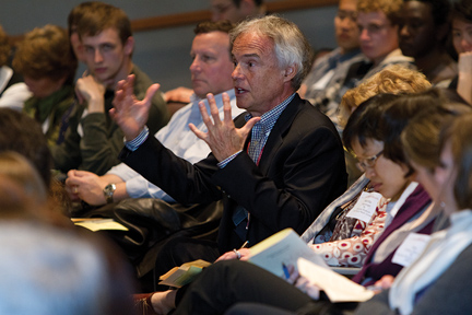 Alumni, students, faculty, staff, parents, and friends came together on March 18 for the 13th annual Jonathan R. Lax ’71 Conference on Entrepreneurship. Keynote speaker David Gelber ’63 (in photo at right) described his own recent transition from veteran news producer to entrepreneur, as co-founder of Roaring Fork Films and co-creator and co-managing director of Years of Living Dangerously, a multiplatform, multimedia project that will highlight the disastrous effects of climate change.