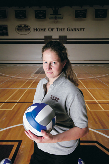 Her passions are volleyball and teaching; her philosophy—to maximize all opportunities. Harleigh Leach Chwastyk was just 24 and completing graduate studies at Smith College when she was named head coach of Swarthmore’s women’s volleyball team in 2002. While earning a master’s degree in exercise and sports studies, she was also a teaching fellow and assistant coach at Smith.