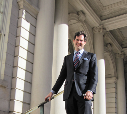 Whichever side you’re on, you can’t fault Brackett (pictured on the steps of City Hall in New York City) for being timid. He credits his boldness to his own formative years at Swarthmore, where he twice served as student council president. In that role, Brackett worked closely with then-College President Al Bloom.