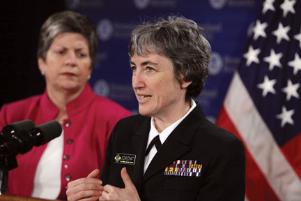 Anne Schuchat (right) joins Homeland Security Secretary Janet Napolitano during a late April news briefing on government response to swine flu. Schuchat is the interim deputy director for the Science and Public Health Program at the Centers for Disease Control and a rear admiral in the Office of the Surgeon General.