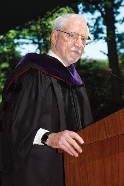 James Hormel ’55, (watch: speech) former ambassador to the Grand Duchy of Luxembourg and the first openly gay ambassador in U.S. history, spoke of his indebtedness to his grandfather, who, through courage and self-sacrifice coupled with hard work and resourcefulness, became the founder of the Hormel Foods Corporation. And he spoke of coming out as a gay man and thereby attaining the freedom to engage honestly with the world.