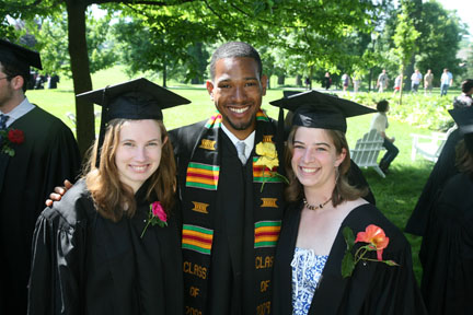 This year, business was not quite as usual. This Commencement ceremony was the last for President Alfred H. Bloom, (watch: speech) a member of the College community for 36 years, 18 of them as its president. He was also one of three recipients of an honorary degree, along with Mary Schmidt Campbell ’69 (watch: speech) and James Hormel ’55 (watch: speech). As he gave his final Commencement address, his usually mellow voice occasionally became just a little husky.