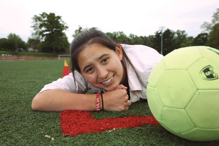 Engineering major Julia Luongo ’10 knows all about dealing with people in a competitive environment—teammates and opponents—as a member of the Garnet women’s soccer team. In Professor of Engineering Fred Orthlieb’s Engineering Materials course, she’s been able to combine her love of soccer with her passion for engineering. Observing the difference in rolling speeds of soccer balls on artificial turf and on grass, Luongo created a project aimed at altering the surface friction of a soccer ball to compensate for the less resistant artificial surface of the Garnet home field, which, she says, allows the ball to roll faster than the longer, more resistant grass on most opponents’ fields. “A ball rolling or being dribbled on grass behaves quite differently from one on artificial turf.”
