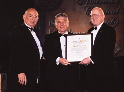 In April 2001, Robert Pasternack (center) received the American Chemical Society Award for Research at an Undergraduate Institution.