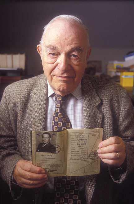 Martin Ostwald with his Nazi-issued passport from 1939. Through his mother’s efforts, he and his brother were sent via Kindertransport to Holland and then England. Despite his peripatetic existence as a refugee during World War II, Ostwald managed to continue his education.