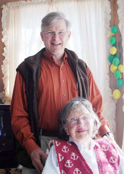 When Tom Webb’s mother (with Tom in 2009) had a stroke, his continuous involvement with her made it bearable. She had long expressed a desire to go and had waited, not always patiently, for it to happen. She had talked to him about her desires, and she knew of his love and wish for her to live but also that he could let her go. The stroke slurred her speech, but she and Tom still had a good understanding. The day before she went to sleep, she summoned him for a long, loving, incoherent talk. The next day, her doctor came to the house to see her. She was alert during his visit and answered his yes/no questions and affirmed her wish not to be resuscitated. When he left, she went to sleep. After eight hours of sleeping through lunch and dinner—and two diaper changes—everyone knew this was it. Tom was losing her and this powerful time in his life. The period of caregiving that his grief had spawned was over, but his sense of involvement and service, along with sweet memories, now carry him into a new phase of grieving and life.