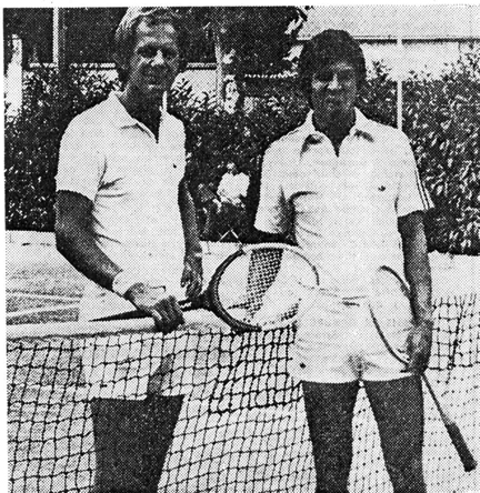 Mike Mullan (left, at a French match ca. 1972) has brought Swarthmore's men's tennis team to 28 NCAA Divison III tournaments, winning three national championships and being named Division III Coach of the Year in 1986.