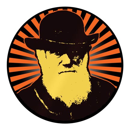 Purrington’s sly sense of humor permeates many offerings on the site, which includes body armor for science teachers (“great for making presentations to backward school boards, but light enough for classroom use”); downloadable Charles Darwin stickers and temporary tattoos (“Darwin has a posse”); and “mildly educational” textbook disclaimer stickers meant to be surreptitiously applied both to science books and creationist tracts. Sticker messages include: “This textbook states that the Earth is over 4 billion years old. Because this fact conflicts rather directly with a hugely popular fictional account, both sides of the argument should be taught to impressionable children”; and “This book was anonymously donated to your school library to discreetly promote magical, religious alternatives to the theory of evolution. Please re-shelve it in the fiction section.”