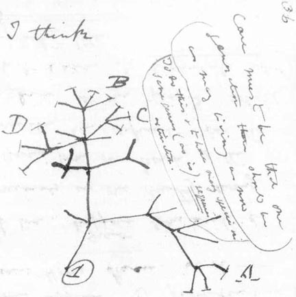 This road sign (above) is one of the most often downloaded images on Purrington’s site: “It was even used by one high school teacher on her class blog, which warms my heart," he says. It’s based on a sketch in one of Charles Darwin’s notebooks, dated 1837 (as seen below).