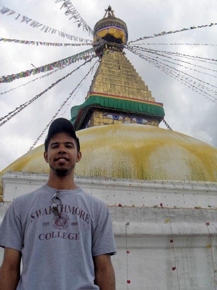 Joseph Lample ’07 (above) visited the Boudhanath Stupa, one of Buddhism’s holiest sites, located on the outskirts of Kathmandu, Nepal.