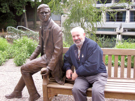 While attending festivities in Cambridge, England, in honor of Charles Darwin’s 200th birthday, Scott Gilbert was able to share a bench with the great man himself, rendered in bronze as a Cambridge undergrad in the 1830s pondering his still uncertain future. Earlier in the year, Gilbert was also invited to speak at a Vatican conference on evolution.