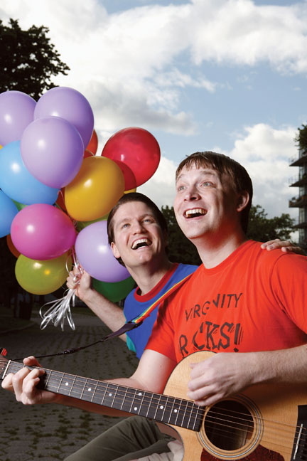 Wilson Hall ’95 and Krister Johnson ’95 spread the word as a religious comic singing duo.