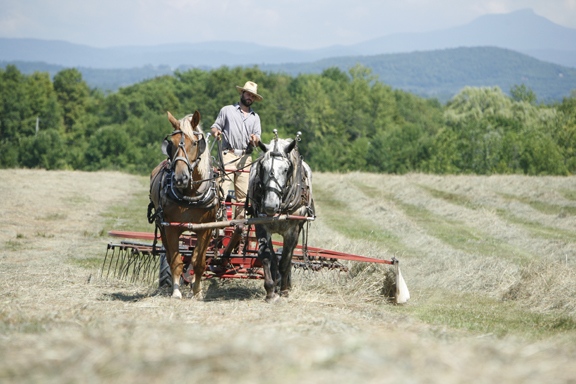 It was a wet spring. The wettest ever. Crazy wet, in fact, with flooding so high the bathing beaches on nearby Lake Champlain are still underwater and the ferry to Vermont shut down for a month. The vegetables are weeks behind—“you may have noticed coming in”—and the corn and wheat are a total loss. But things are mostly righted now. A stretch of sunny weather has boosted crops and buoyed spirits, and Essex Farm is gearing up for a big weekend of haying. If the weather holds out, they hope to bring in 3,000 bales.