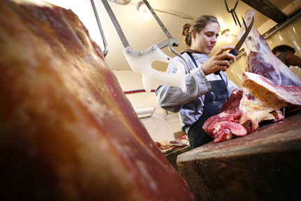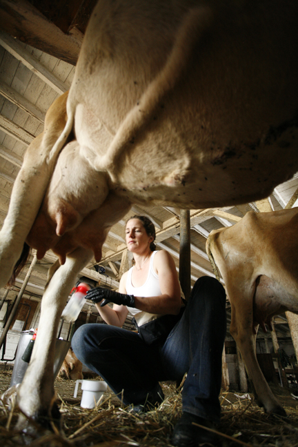 Their backgrounds are varied and impressive. Chad, the horseman, studied forestry at nearby Paul Smith’s College and last worked at horse-drawn logging in Virginia. Courtney, the butcher, came to Essex after finishing welding school. (“It was either this or join the pipefitter’s union,” she says.) Racey, in charge of chickens, spends two months a year in Africa on development projects for the World Bank. Asa, the vegetable foreman, is also a stone mason; and Nathan, who runs the dairy, is a seismic engineer. Then there are the short-timers: Mo, a Harvard Ph.D. student in music theory; and Matthew, who teaches high-school in inner-city Chicago. The latter are here just for the summer, but most of the others hope to move on someday to farms of their own.
