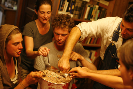 Bring your spoon, it’s time for ice cream. Kristin Kimball (second from left) met Mark Guenther (third from left) when she was assigned to write a magazine article about his farm in central Pennsylvania. A year later, they leased 500 acres in the Champlain Valley and founded Essex Farm together. She never wrote the article.