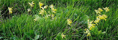 Alors, alors, j’entends le fin ruisseau tourbillonner entre des accroche-coeur verts. Les coucous si coquins dressent leurs tiges rehaussées de minuscules fleurs jaune pâle. Ils échangent leur doux parfum d’amande comme des dames à la sortie des écoles vantent leurs progénitures. Les primevères en barboteuses barbotent dans la mousse baignée de soleil.