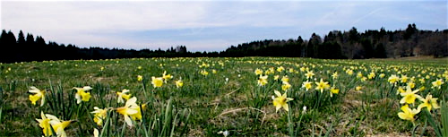 Mes chères jonquilles, montrez-vous. Je vous revois par milliers baigner les champs de Haute-Loire. La neige vient de fondre, l’eau ruisselle dans un pré ouvert en deux par une rigole enfouie sous de hautes herbes. On descend de voiture. Papa, tête ronde et rieuse, chapeau couvrant sa calvitie de toujours, sort avec nous, tout émoustillé, prend son élan en joli costume gris perle, enfonce sans retenue aucune ses chaussures cousues main dans les mottes gorgées d’eau, se baisse, cueille une, deux, trois, vingt jonquilles, rit d’aise, se relève une dernière fois, tend le bras vers nous en signe de victoire et glapit: “Le resto nous attend!”. On remonte dans la Citroën noire, papa maman me font passer leurs bouquets que je dispose avec le mien en rang d’oignon sur la plage arrière. Pas difficile le soir venu de repérer en ville quelles autos sont allées aux jonquilles.