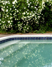 Et je regarde tout bien, commence à inspecter, et je fais ce que je fais normalement régulièrement, ouvre le petit filtre à vider que je n'avais pas vidé depuis que j'avais mis le système piscine en route et ô quelle vue! Une masse compacte de feuilles et de débris super super serrés, ce qui fait qu'en effet l'eau n'y circulait plus et ne filtrait plus, d'où aussi aucune pression, ce qui a été le cas toute la semaine dernière. Je vide donc le tout et ô miracle, le gros filtre en route éjecte air puis eau, Et l'eau repasse et sort du tuyau dans la piscine. Et donc voici réglé le problème du filtre qui j'espère absorbera toutes les cochoncetés au fond de la piscine lentement mais sûrement maintenant, et tout mon travail d'une semaine sur cette étendue d'eau en effet en vain, et ce dû à mon manque de réaction et oubli car trop fatiguée, trop sur la tête...