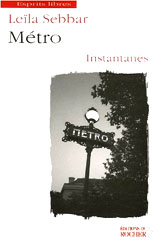 Leïla Sebbar. Métro, Instantanés. Éditions du Rocher, Collection Esprit libre, 2007. Le métro. Paris. Une Babel souterraine au-delà des mers, où se croisent les visages et les corps, les accents et les langues. Des instantanés, notés à la vitesse du métro, ironiques et tendres. Saynètes, dialogues, portraits. Des histoires furtives, éphémères, qui racontent deux minutes trente-cinq de bonheur ou de malheur. ISBN 2-268-06049-7