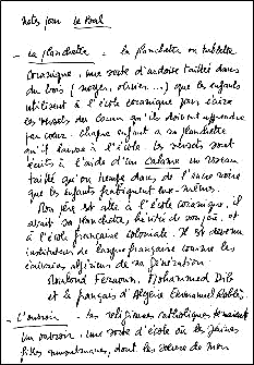 Leïla Sebbar: Le bal (1991) Lorsqu'elle s'assoit au pied du noyer, elle ne sait pas qu'elle sera enlevée. Le dimanche après-midi, la mère dit toujours qu'elle n'a pas le temps pour une promenade le long de la rivière. De l'autre côté du chemin de terre qui longe la maison et le pré bossu, si on marche à travers les noyers, on arrive à la Dronne. De la fenêtre des chambres, à l'étage, on la voit. Elle n'est pas aussi large que la Dordogne mais le père la trouve plus belle. Il pêche des truites, en pêcheur et en braconnier... Et comme il est aussi gendarme... Elle est née avec la rivière, en bas. Dès le premier jour, depuis la chambre où la plus vieille du village l'a mise au monde, elle a regardé la rivière entre ses bras de vieille femme douce qui ordonne aux plus jeunes, après le travail de la douleur. A la mère qui se soulève sur un coude pour voir la petite qu'on détache de son flanc pour la présenter à la Dronne, la vieille affirme qu'à la première heure, si on expose l'enfant qui vient de naître au bruit de l'eau courante, et si on trace une minuscule croix sur son front avec de l'eau fraîche prise comme à la source, alors l'enfant ouvre les yeux au monde et peut regarder et voir par-delà la rivière, en passant l'autre rive. La vieille présente l'enfant à la rivière, il a fait chaud dans l'après-midi, une abeille se pose sur le ruban de satin qui ourle le bonnet, la vieille ne la chasse pas, malgré les protestations des jeunes filles qui suivent ses gestes, depuis qu'elle gouverne la chambre. C'est un présage heureux. Comme si elle voyait l'éclat de la rivière entre les noyers, la petite pousse un cri. La mère s'inquiète, tend ses bras vers la fenêtre et sa fille. - C'est ta fille. Ne t'inquiète pas. Je ne vais pas la voler ou l'abandonner à la rive. Je veux seulement qu'elle regarde, jusqu'au sommeil, la pierre du chemin, les talus du pré, les vieux noyers et la rivière. Qu'elle n'oublie pas, même si elle part un jour, loin, très loin, de l'autre côté de la rive. - De quoi parles-tu ? dit la mère qui réclame sa fille. Je ne comprends pas ce que tu dis. - Ta fille partira. Tu le sais... - Oui. Mais plus tard, plus tard. Pourquoi tu parles du jour où elle s'en ira. Elle est à moi, dans ma maison, pour des années... Je veux ma fille. - C'est ta fille. Je le sais. Elle a regardé la rivière, de cette fenêtre où elle est née, comme personne jusqu'ici. Je suis sûre qu'elle pourrait dire son nom... - Tu parles comme si elle était née de la rivière... Je n'ai pas accouché dans une barque, ni au bord de l'eau... comme une vagabonde sans maison. Je n'ai pas voué ma fille à la rivière... - Ni à la Vierge... - C'est vrai. Rends-moi ma fille. - Tu ne veux pas l'appeler Ondine ? - Non. Son père est allé la déclarer. Elle s'appellera Marie. Avant le café au lait, elle court jusqu'à la Dronne, tous les jours, quel que soit le temps. La mère a peur. Elle a tenté de la mettre en garde. Une grand-mère maternelle s'est noyée, une nuit de désespoir, dans la Dronne, un peu plus haut. Elle ne l'a pas dit à sa fille. Au début, le père l'accompagnait. Il la laisse aller seule, il répète qu'elle la connaît presque mieux que lui, la rivière... Mais la mère n'aime pas l'attendre le soir. Si elle ne revenait pas. La vieille a prédit, elle se rappelle, l'enfant exposé à la fenêtre ouverte, qu'un jour elle irait au-delà de l'autre rive. Jusqu'où ? Elle ne la verrait plus ? Lorsqu'il fait chaud, à l'heure de la sieste, on entend les abeilles, les ruches ne sont pas loin, derrière la haie qui abrite le verger, le père se repose dans l'ombre de la chambre là-haut, la mère épluche des fruits dans son tablier, assise sur la chaise en chataîgnier, à l'abri du petit hangar, un seau à ses pieds. Marie a l'habitude de lire sous le noyer, au bord de la Dronne. - Encore avec tes livres, dit la mère, lorsque Marie passe près d'elle et l'embrasse sur le front. - Viens avec moi. Tu verras... - Je suis mieux ici... Elle prend une moitié de poire. - Et tu n'as pas autre chose à faire ? Tu lis toujours... C'est pour l'école ? - Non. Assise au pied du noyer, elle lit les romans africains de Pierre Loti. Sa mère l'appelle. C'est le fils aîné. Elle crie son nom par-dessus le mur qui cerne la petite cour. Elle ouvre le portail peint en vert et regarde dans la rue. Un dernier appel, vibrant, coléreux. Elle referme le portail qui grince depuis toujours. Ses filles ne peuvent plus, comme elles le faisaient il y a quelques années, aller chercher les frères qui jouent sur la place du village sous les eucalyptus. Ils se disputent les noyaux ou le ballon que l'un d'eux a racheté à un garçon de France. La mère surveille ses filles, elles ne sortent plus. Bientôt, elles seront mariées. Elles vont au bain maure le vendredi, et au cimetière. Une fois par mois elles visitent le marabout de la famille sur la colline qui domine la mer et elles suspendent, en secret, aux branches de l'olivier, un ruban de satin ou de velours vert. Elles font un voeu. Pour se rendre au mausolée du Saint, elles mettent leur voile le plus beau, le plus fin, tissé par des cousines. Et lui, le fils aîné, après l'école coranique, il court vers la vieille ville pour les légumes, la semoule, les fruits, le poulet qu'il doit égorger, le père est mort. Il achète le poulet vivant et il le tue sur la terre, au pied du figuier de la petite cour à l'intérieur des murs. La terre boit le sang. Ce jour-là, il est en retard. Il jette le poulet aux pattes attachées sur le carrelage mouillé par ses soeurs. Il fait chaud. A l'école française, Mohamed arrive essoufflé. Le directeur a déjà sifflé. Les élèves sont en rang devant la classe. L'institutrice l'attend. Elle ne dit rien lorsqu'il passe devant elle, les pieds nus, les mains sales, il n'a pas eu le temps de s'arrêter à la fontaine, entre la maison et l'école, comme il le fait les au