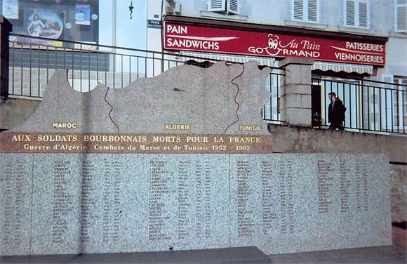 10 mars – Saint-Pourçain-sur-SiouleLes 10 ans des éditions Bleu Autour. La Stèle. Le Kiosque. LIP. Les Marianne de Hervé Moisan. Résistants algériens de Moulins, 6 septembre 1944. Noyant d’Allier avec Patrice Rötig. L’Indochine dans les corons miniers. C’est à Saint-Pourçain que la patronne de La villa dans L’habit vert, se retire à la fin de la guerre d’Algérie. Elle est née dans un vignoble de la région. Avec sa jeune lectrice, la petite bonne de la maison close de Madame, à Alger, elle vit ses dernières années parmi les vignes et les livres, à Saint-Pourçain. Bleu autour fête les dix ans de la maison d’édition de l’avenue Pasteur à Saint-Pourçain. Une tente berbère marocaine sur la place au bout de la rue qui monte, après le curieux monument aux morts pour la France. La stèle suit la géographie de l’Afrique du Nord. C’est jour de marché en face du Café-Brasserie du cours, lettres creusées dans la pierre comme j’aime les découvrir lors de mes voyages en France, il en reste encore. J’aime aussi les kiosques des villages et des villes françaises. Le kiosque de Saint-Pourçain est simple, gracieux, moins beau que celui de Sidi-Ghilès (ex-Novi) près de Cherchel en Algérie, Paul Faizant habite juste en face.