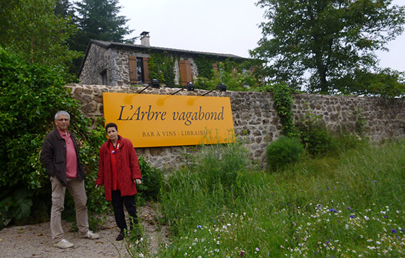 La librairie-bar à vins L’arbre vagabond de Jean-François et Simon Manier domine une colline. C’était, je crois, une ancienne école et Jean-François a connu la dernière institutrice. Une belle librairie, hospitalière, raffinée comme une maison de la bohème anglaise. On a envie de s’asseoir là, dans les livres et l’odeur de la cuisine de Simon, le fils de Jean-François, pour toujours. Jean-François Manier typographe, a fondé avec sa femme les éditions Cheyne, et chaque année il invite un éditeur et un auteur avant Les lectures vagabondes de l’été, lectures sous l’arbre.