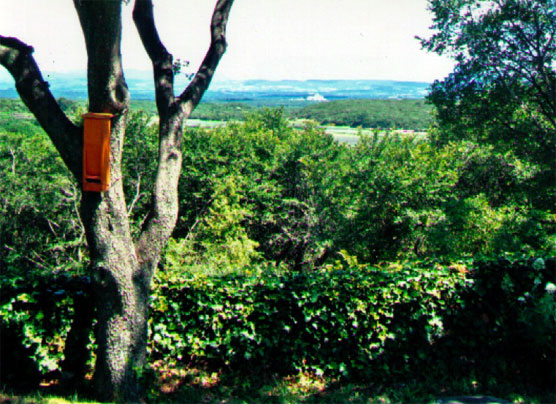 À l’est, une mangeoire accrochée à un chêne vert distribue des graines de tournesol tout l’hiver aux innombrables mésanges qui séjournent ici.