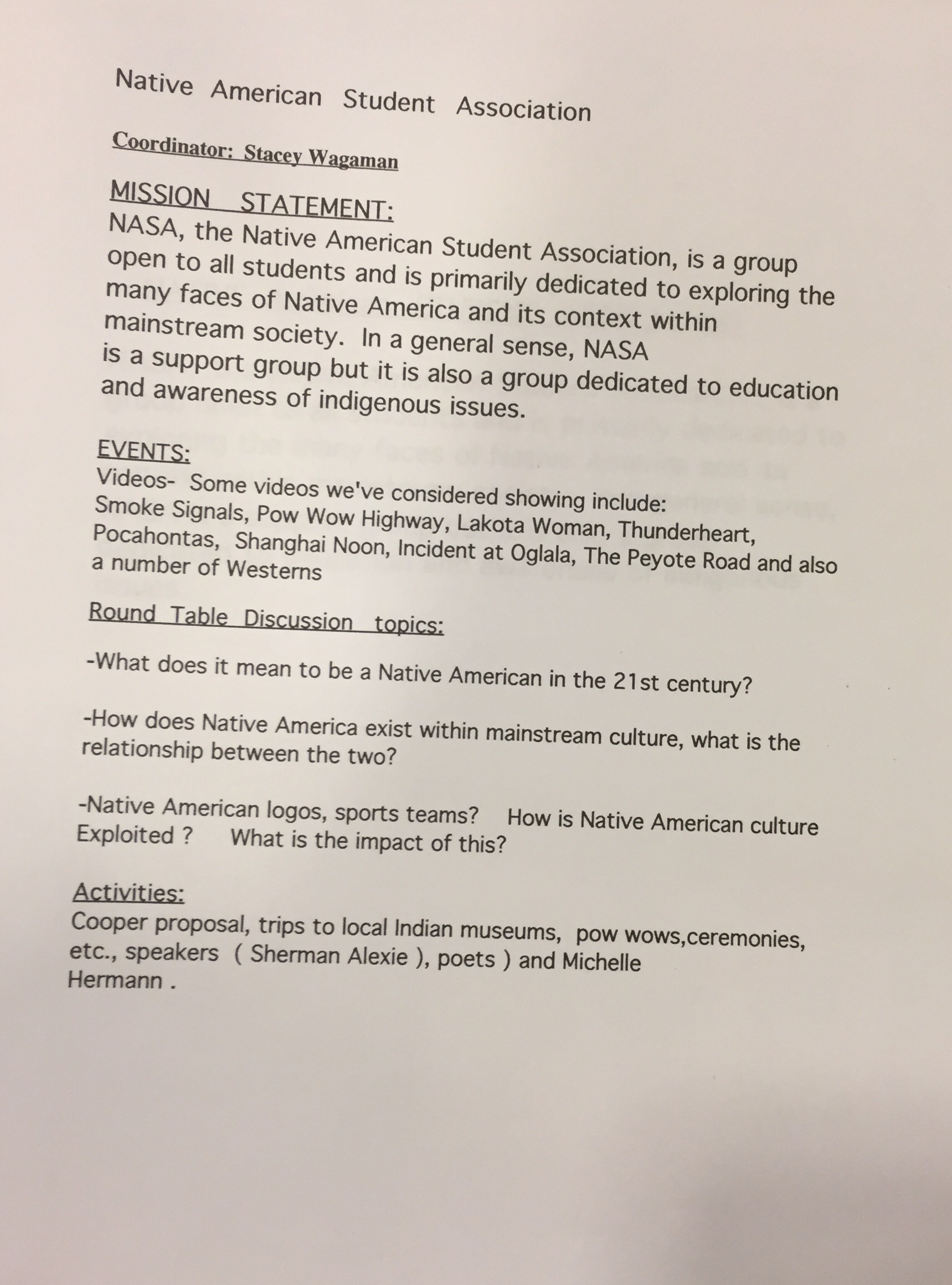 (2) NASA(2) NASA 2000: The Native American Students Association is formed and becomes part of the IC. Post navigation Published inCase 3: ALANA Seminar, NASA, Alumni, Diversity (1994-2002)