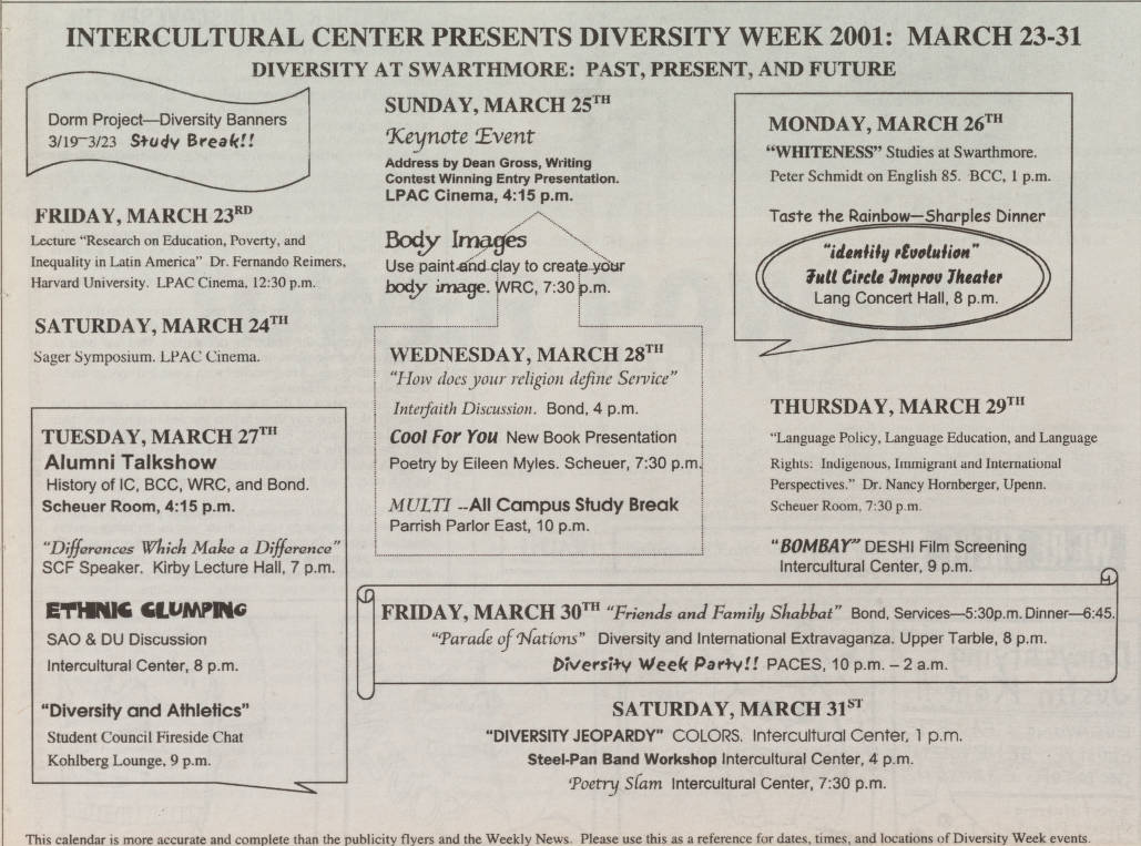 (5) 3.22.2001 diversity week schedule(5) 3.22.2001 diversity week schedule March 23-31, 2001: Diversity Week Post navigation Published inCase 3: ALANA Seminar, NASA, Alumni, Diversity (1994-2002)