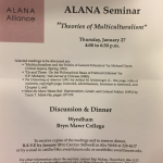 - 1994: ALANA Seminar advertisement ALANA is an alliance of Bryn Mawr, Haverford, and Swarthmore College faculty members and administrators of all races who have come together to promote the concerns of faculty of color.