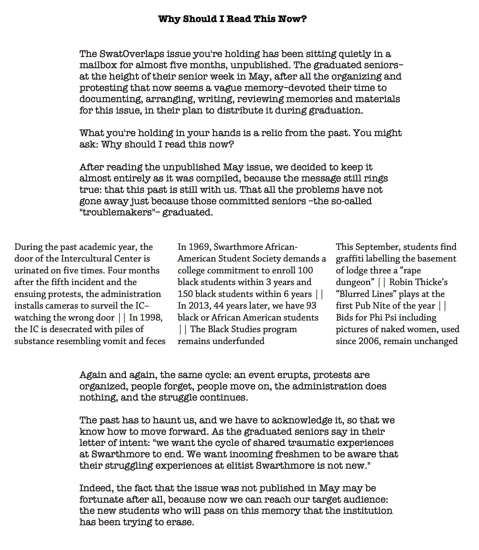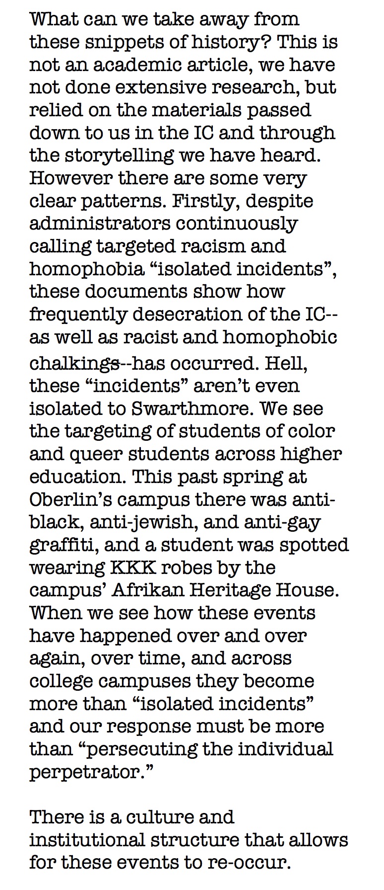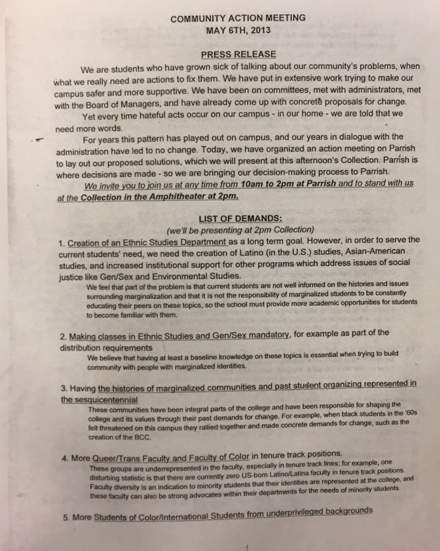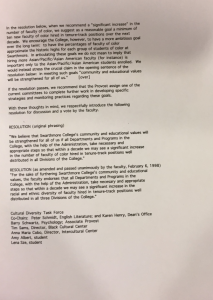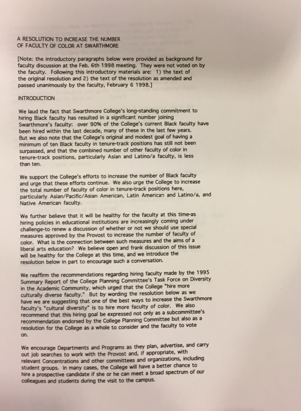 - February 6, 1998: Resolution to increase the number of faculty of color at Swarthmore (1/2)