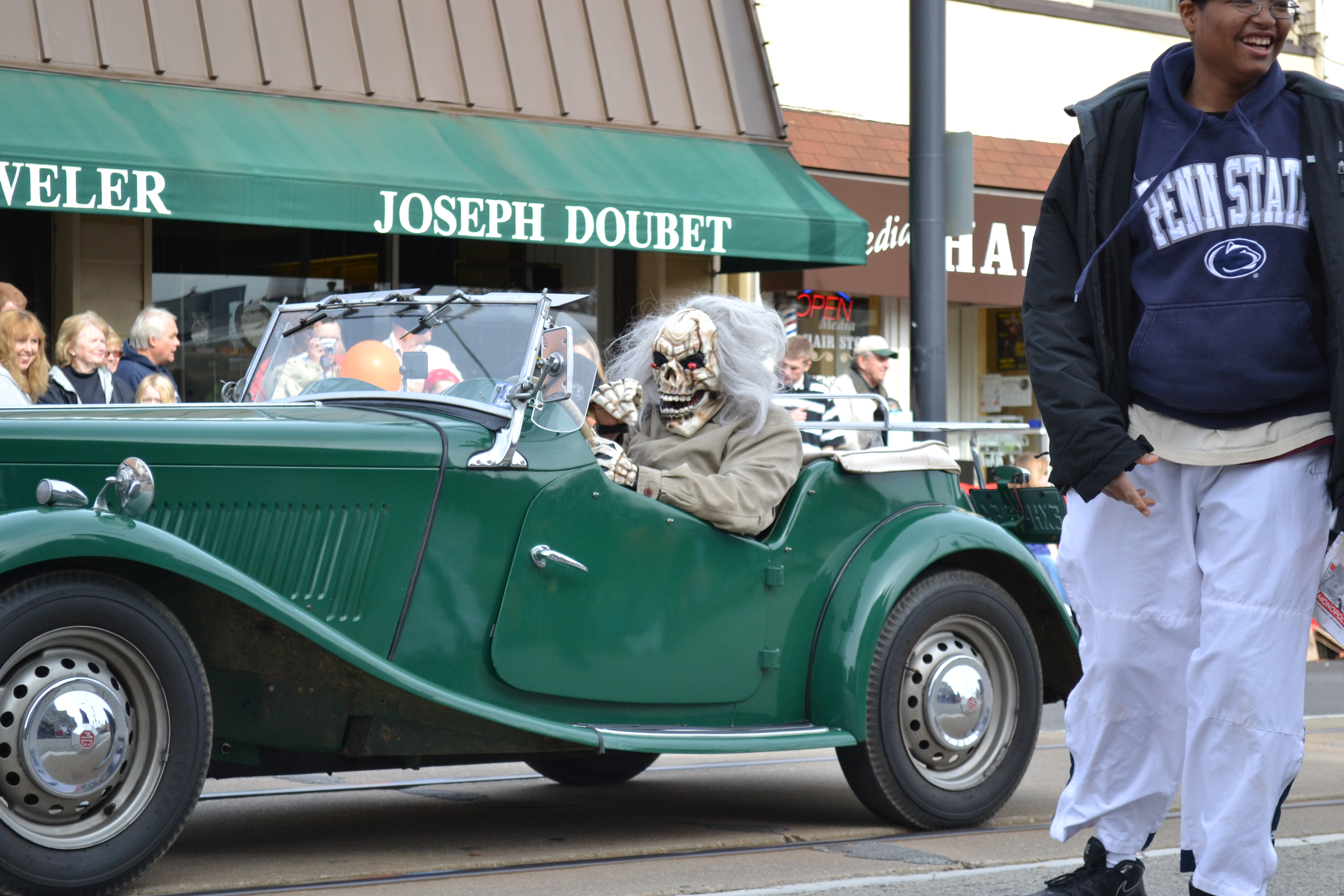 There really is a concerted effort to destroy Halloween, one of the most wonderful translations of the pre-modern. In addition to paternalistic “Trunk-or-Treat” and Mall-based celebrations, which are everywhere, our local Y is staging a drop-off Halloween party tonight, the highlight of which is the free flu shots for kids, and my paper today had a 1/3rd page Parenting story headlined “Halloween is the time to teach moderation”!!