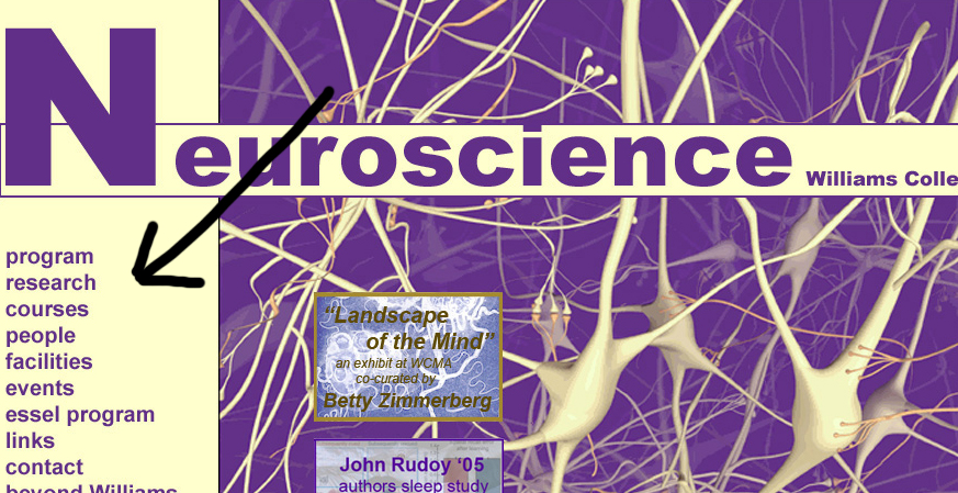Where do you go? Well, there’s always the expedient trick of Googling “Williams neuroscience”. But let’s do it the old-fashioned way, by drilling down the links. At the Williams main page, you’ll see: