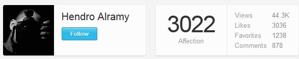 However, photographers also have a measure that cumulates in a linear manner, called Affection. This does not decline over time: it simply gets bigger and bigger as the user’s images gain favor and votes. (It does not move from gaining or losing followers.) It only goes down if an image is disliked or if the user deletes an image that had likes and favors on it. A high Affection entitles you to dislike images: most users do not have access to the option.
