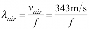 - In tissue, the wavelength increases compared to the wavelength in air, because the speed of sound in tissue is greater than in air, and the frequency remains the same as the wave travels into the patient. Because wavelength = speed/frequency, increasing speed with constant frequency causes the wavelength to increase. Expressed with equations,