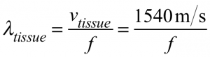 (Lesson 2) - Because wavelength = speed/frequency, and speed just depends on the type of tissue, doubling frequency changes the wavelength to half what it was in that same tissue. (Lesson 2)