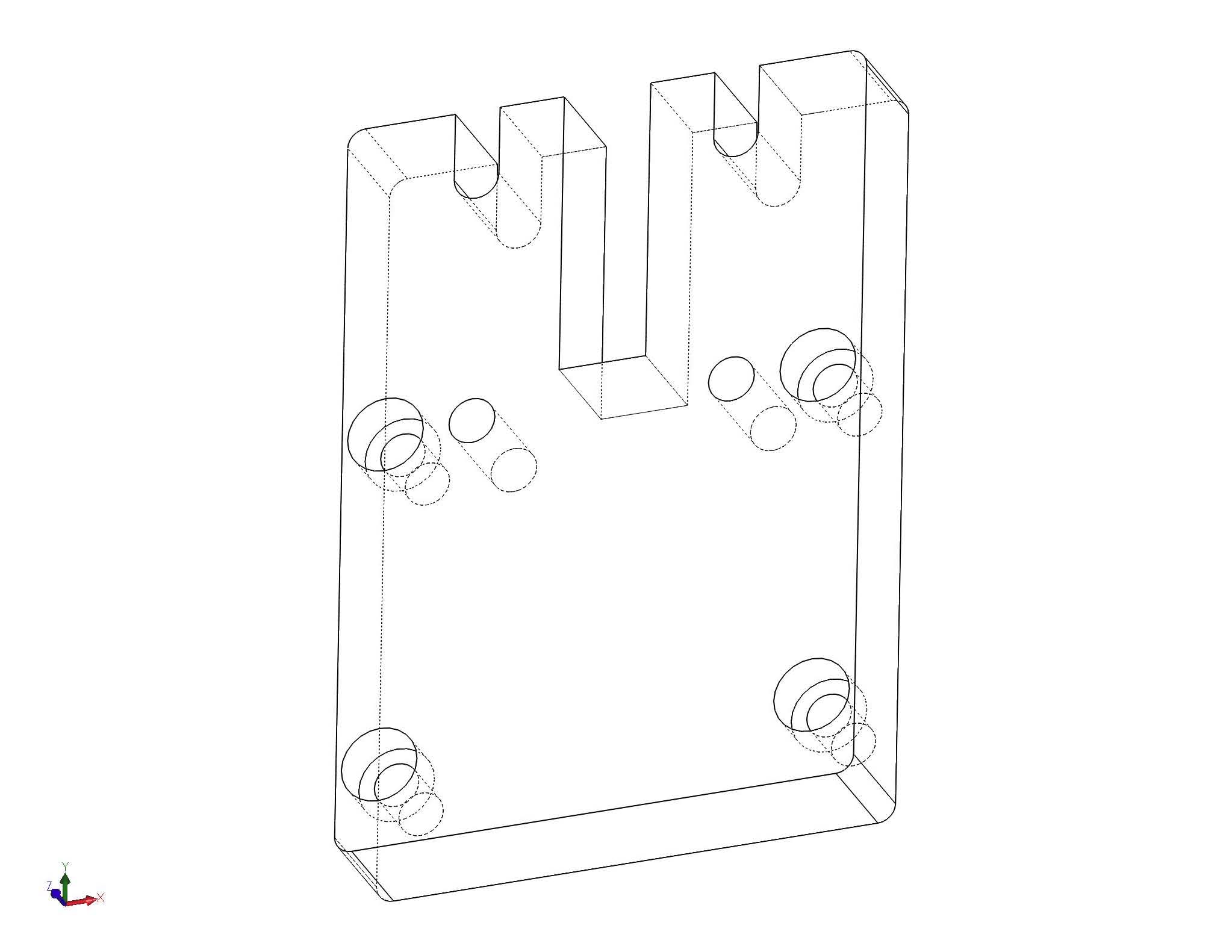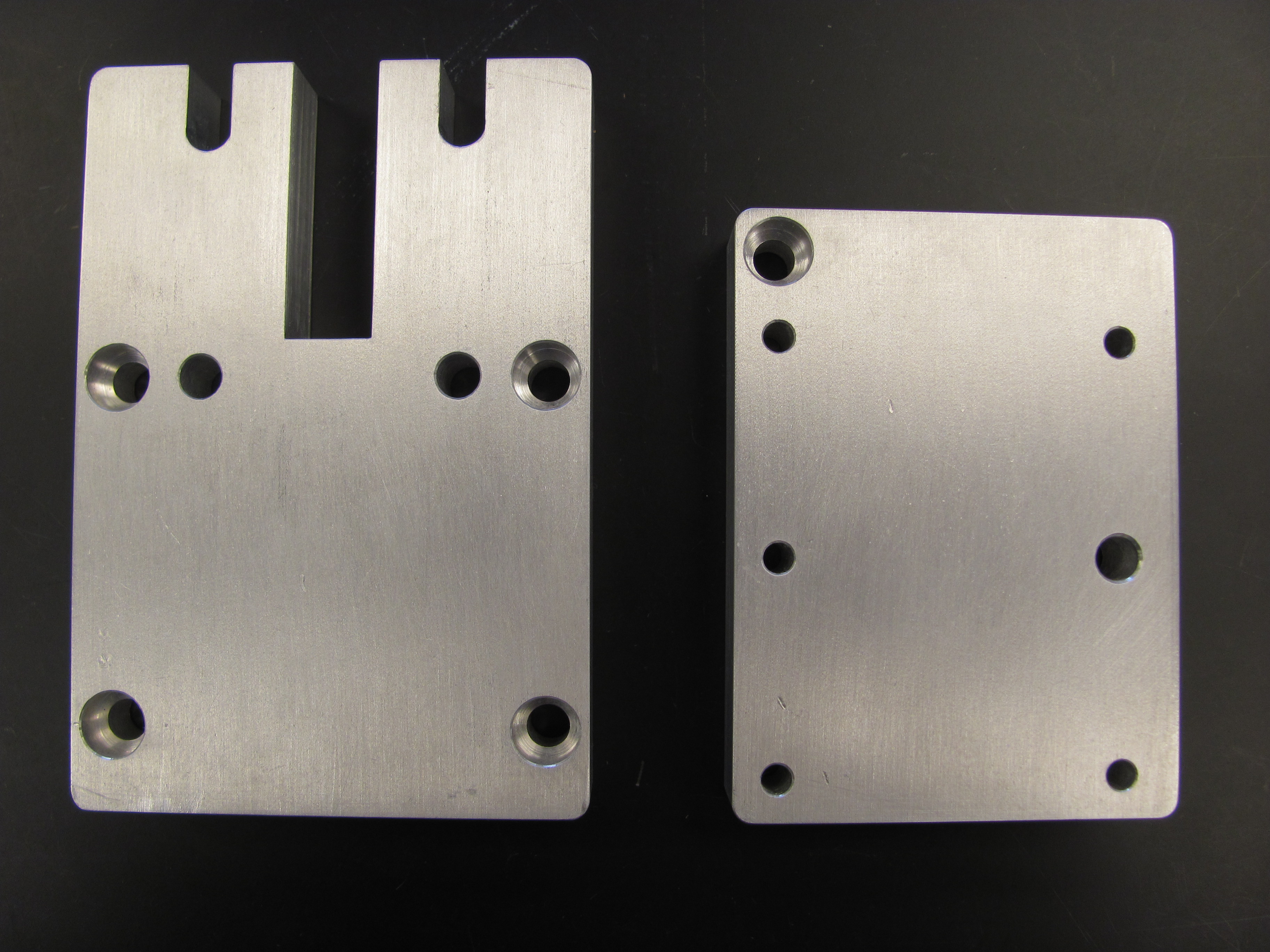 The filter cubes are mounted on two 5/8″ thick plates (back plate on the left, front plate on the right in the image below). These can be machined out of 5/8″ aluminum or printed on a 3D printer.