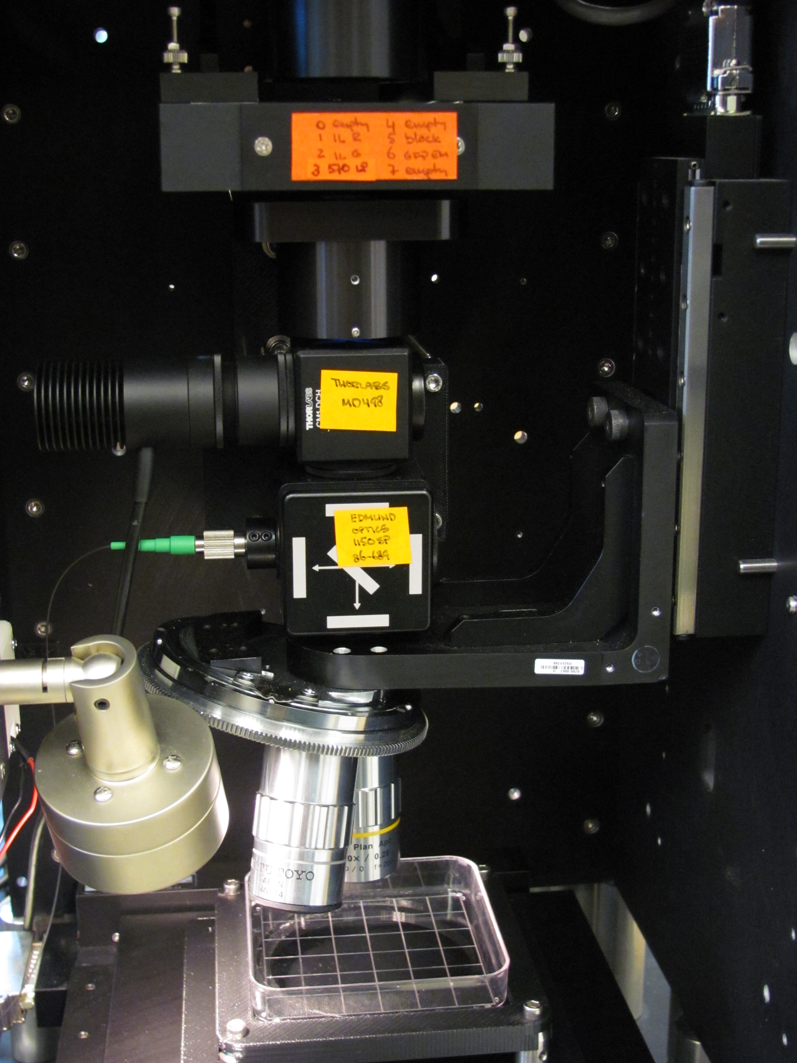 As a preview of what is coming next, here is a picture of a GAIIx imaging core built up into the RootScope II. Unlike the first Rootscope which was built using these parts bought separately, the Rootscope II takes advantage of the extremely rigid frame contained in the GAIIx which nicely aligns the optical train and the camera. As you can see, by buying a whole instrument you get a fully functional automated microscope out of the box. Because it contains a tube lens and infinity objective you can add any components you want if the original setup does not provide the functionality you need.
